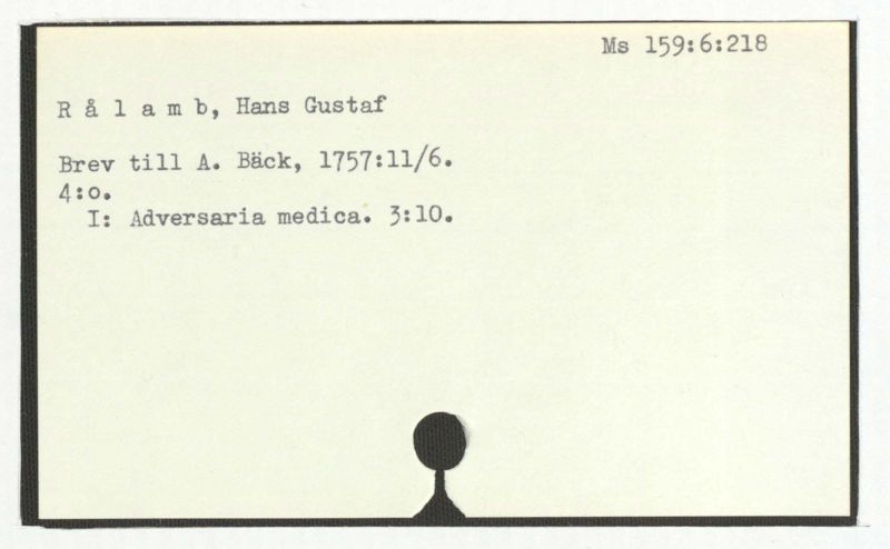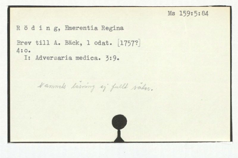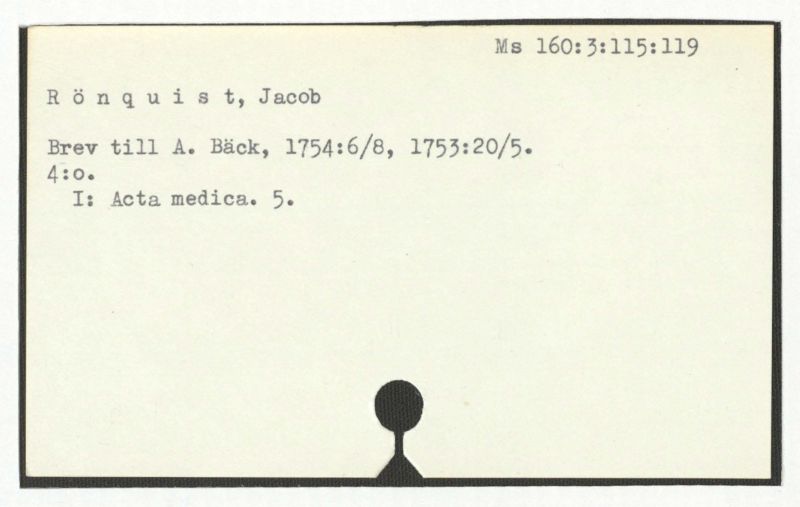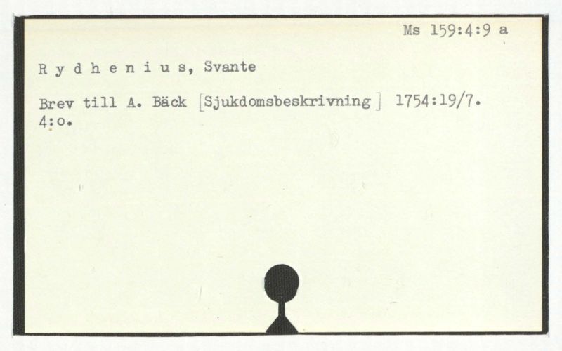 Brev till A. Bäck [Sjukdomsbeskrivning] 1754:19/7. 4:o.