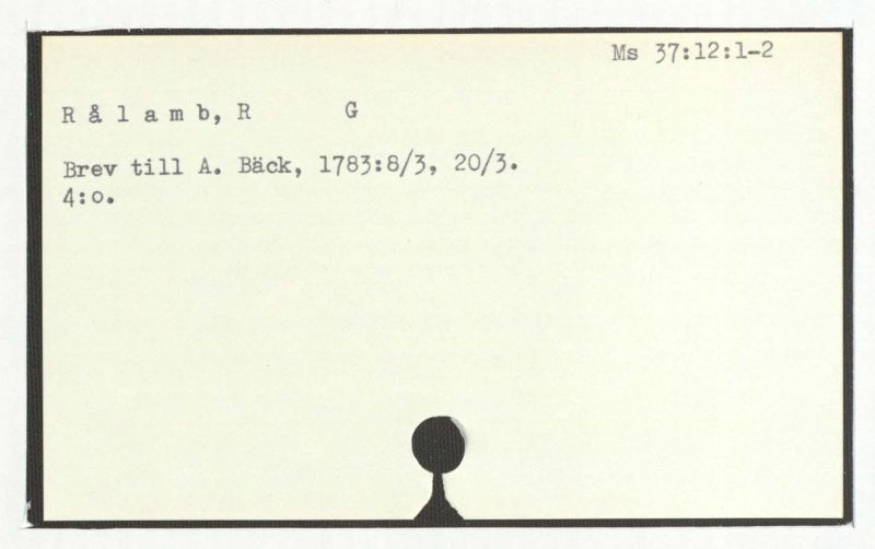 Brev till A. Bäck, 1783:8/3, 20/3.