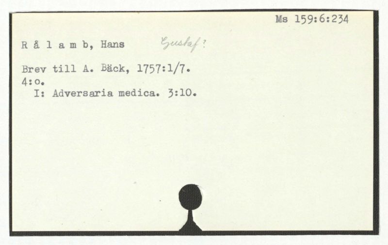 Brev till A. Bäck, 1754:6/8, 1753:20/5.