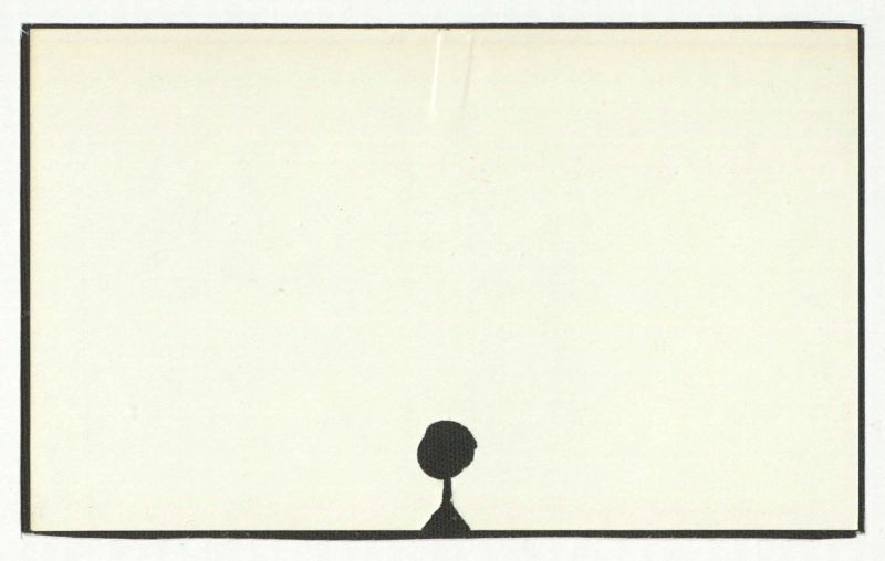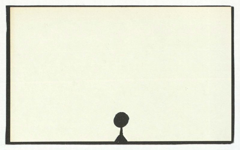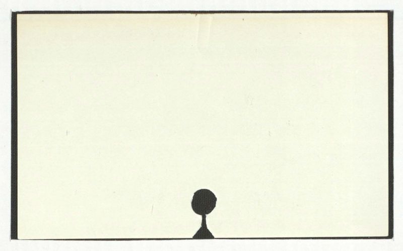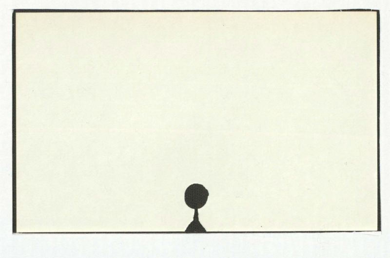 Thereisnotextpresentintheimage. Theonlyelementsaretheblackborder, the light background, and the black silhouette of a figure at the bottom.