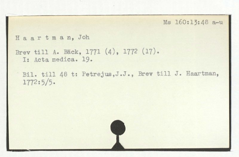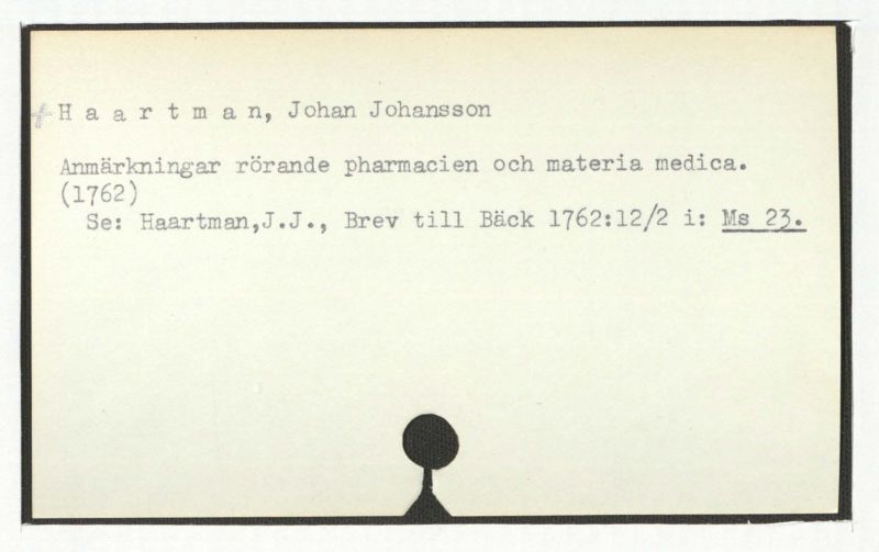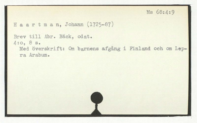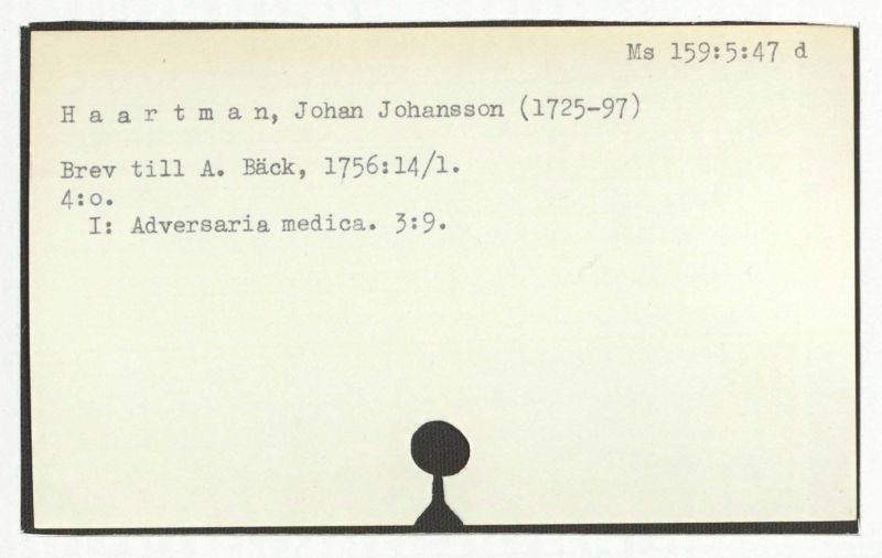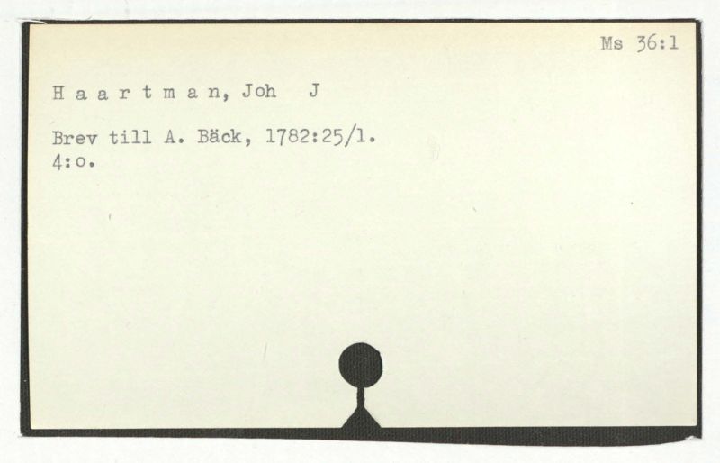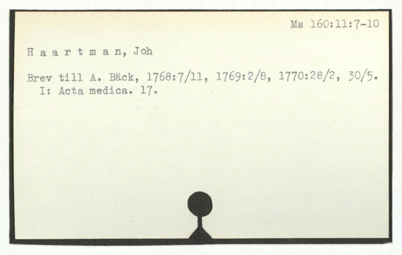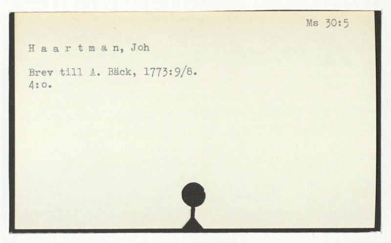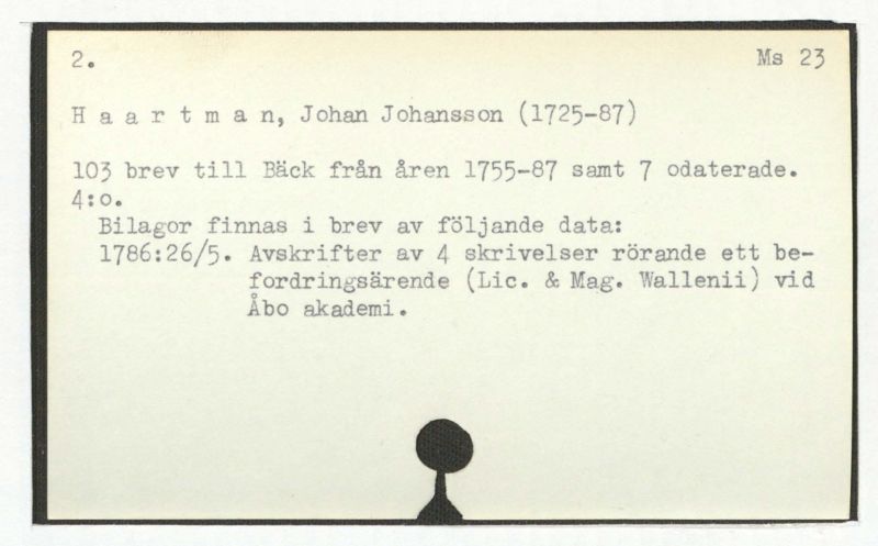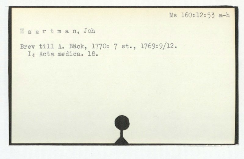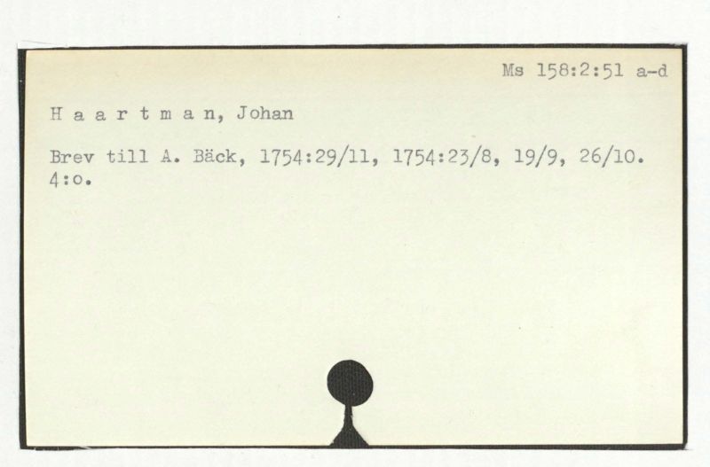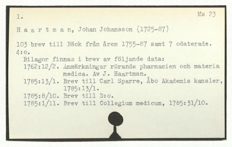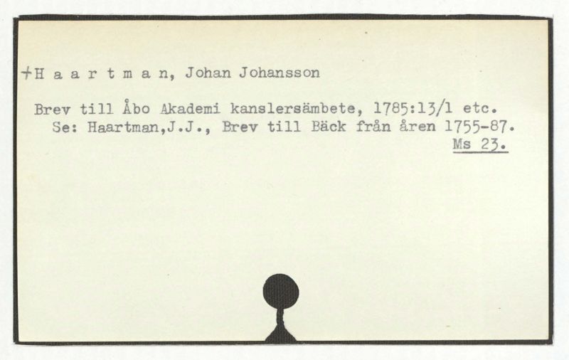 Se: Haartman,J.J., Brev till Bäck 1762:12/2 i: Ms 23.