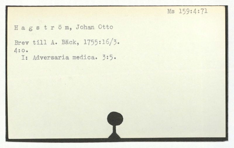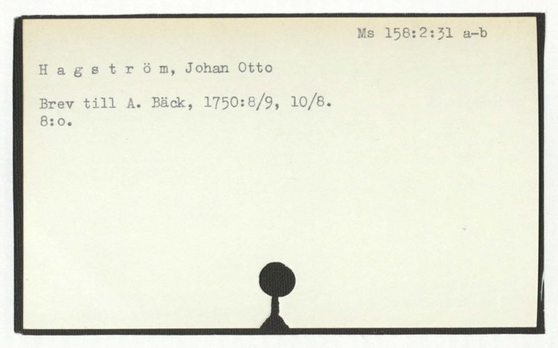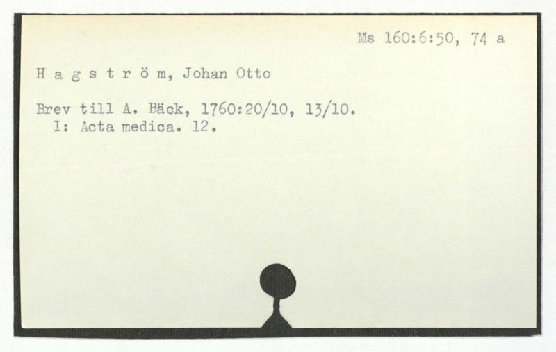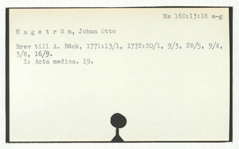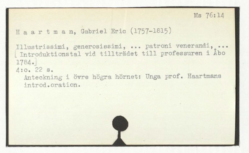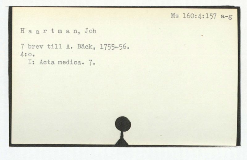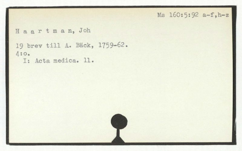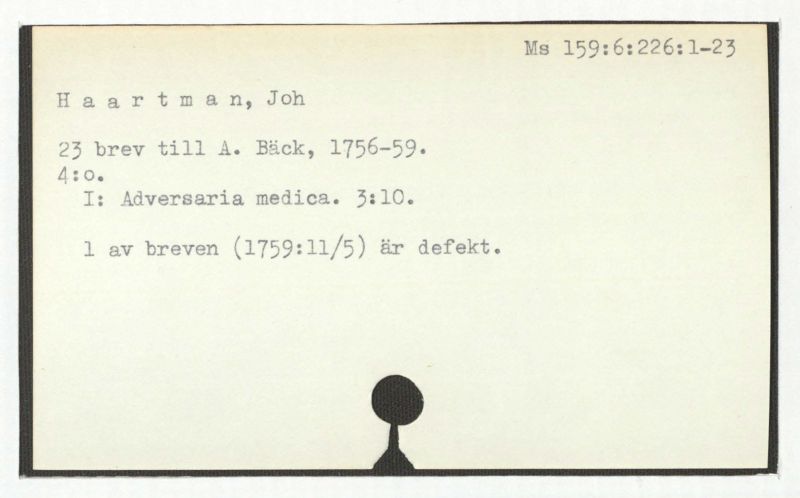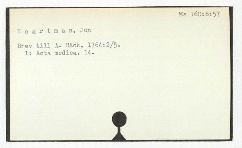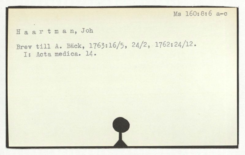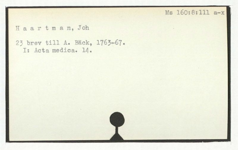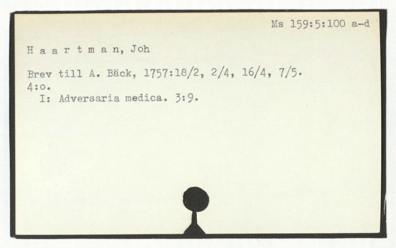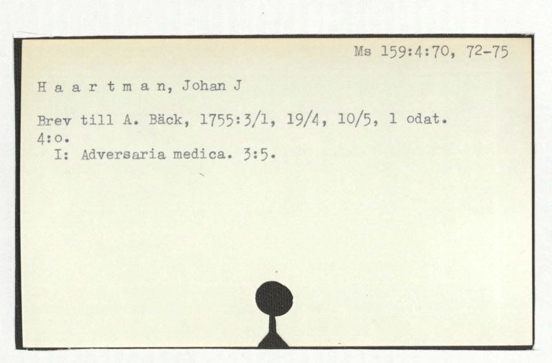 Se: Haartman,J.J., Brev till Bäck 1762:12/2 i: Ms 23.