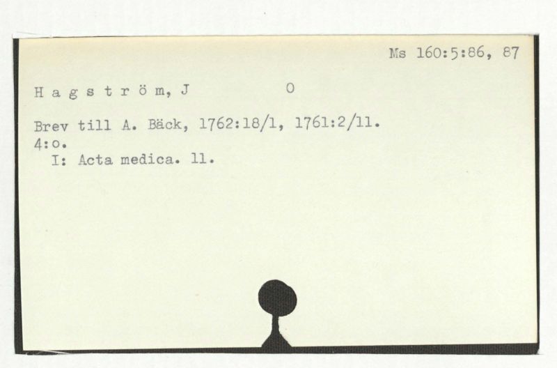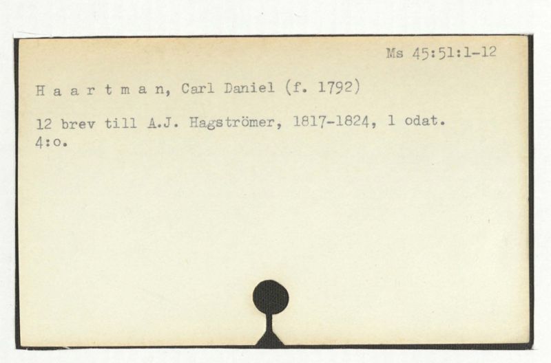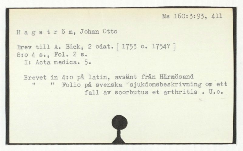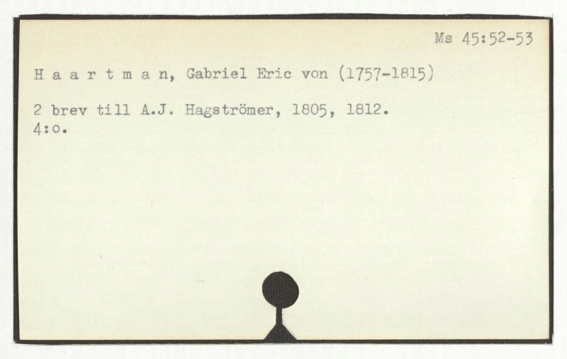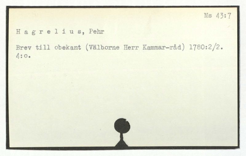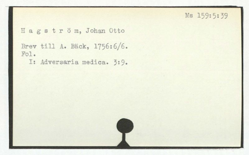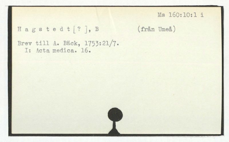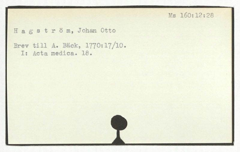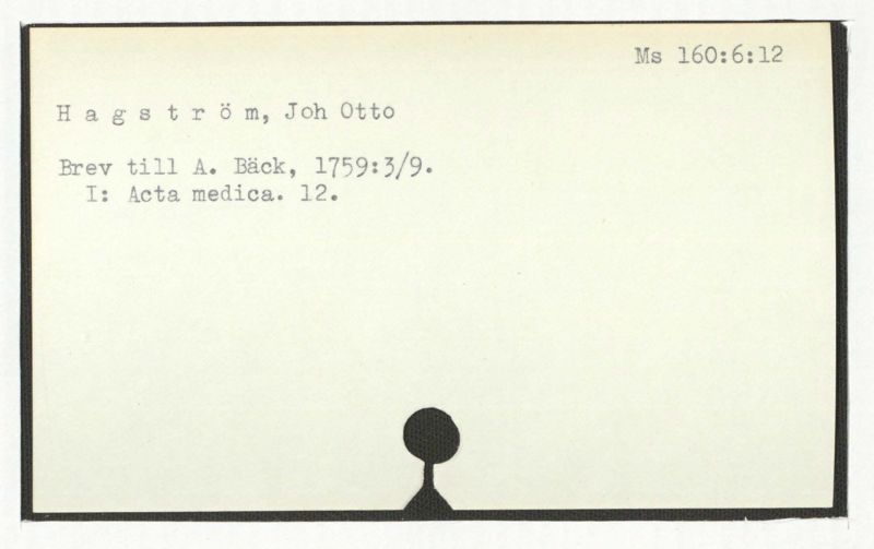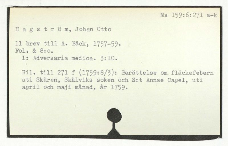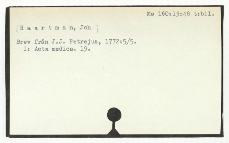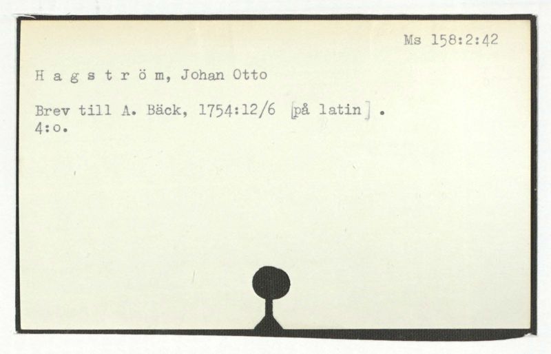 Se: Haartman,J.J., Brev till Bäck 1762:12/2 i: Ms 23.