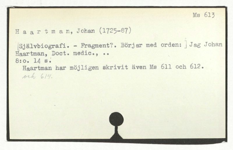 Haartman har möjligen skrivit även Ms 611 och 612.