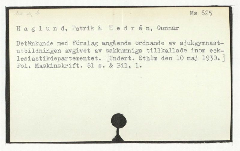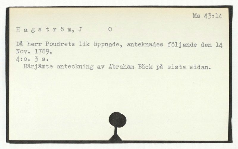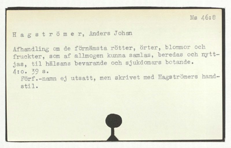 Förf.-namn ej utsatt, men skrivet med Hagströmers hand-