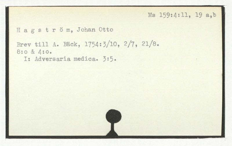 Brev till A. Bäck, 1754:29/11, 1754:23/8, 19/9, 26/10. 4:0.