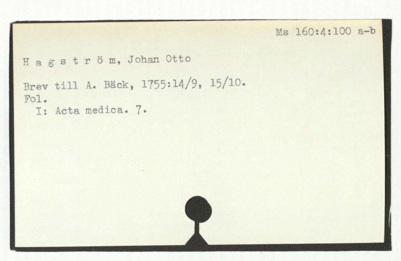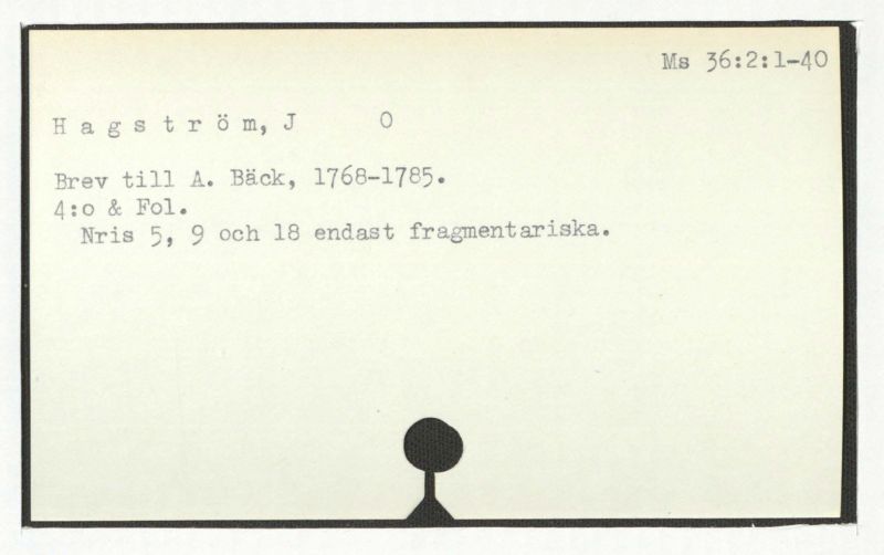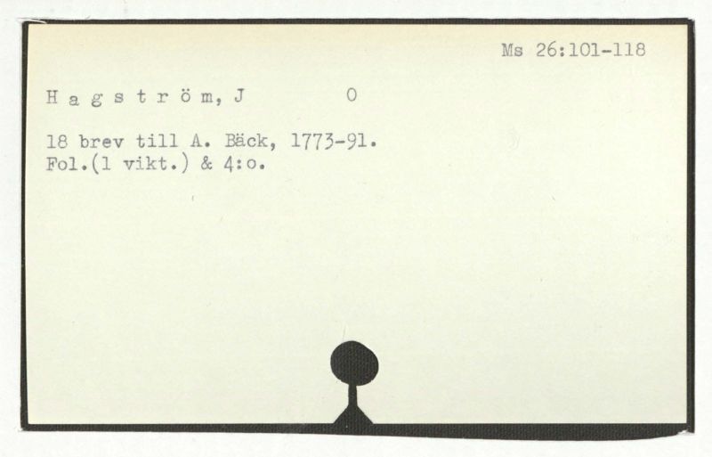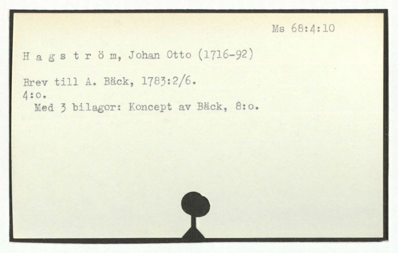 103 brev till Bäck från åren 1755-87 samt 7 odaterade.