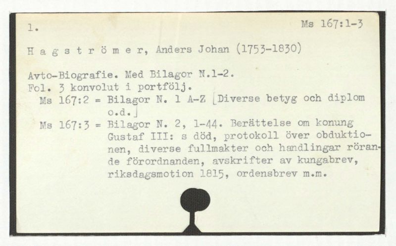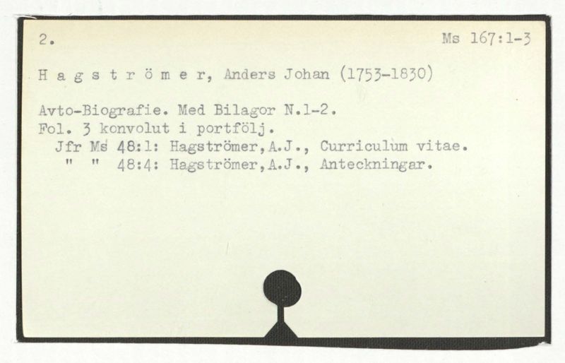 Jfr Ms 167: Hagströmer, A.J., Avto-Biografie.