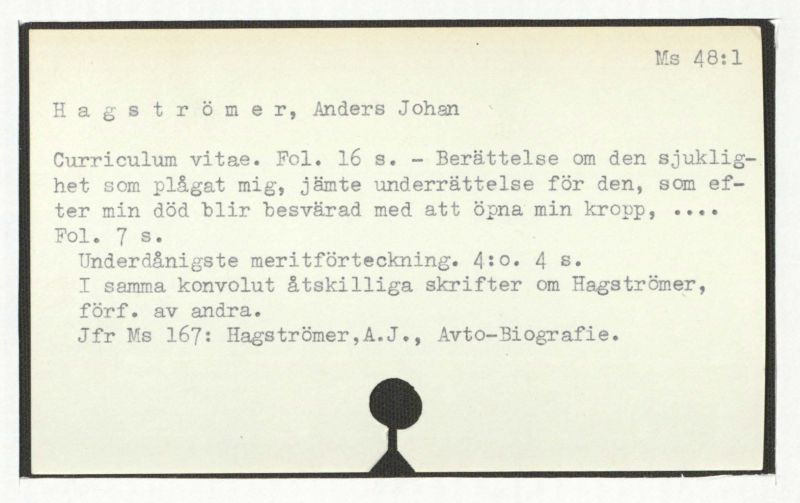 Jfr Ms 48:1: Hagströmer, A.J., Curriculum vitae.