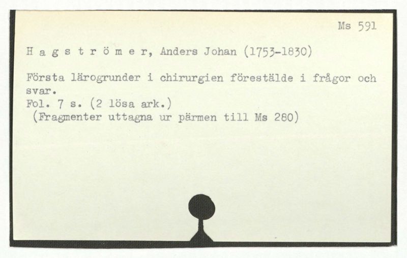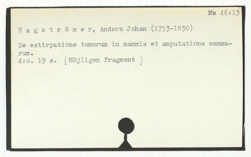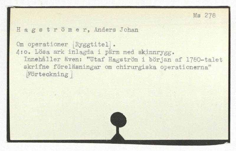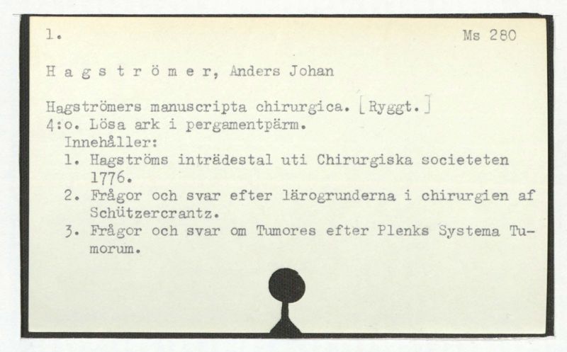 Innehåller även: "Utaf Hagström i början af 1780-talet skrifne föreläsningsar om chirurgiska operationerna"