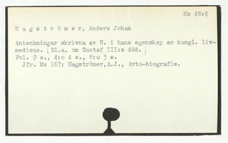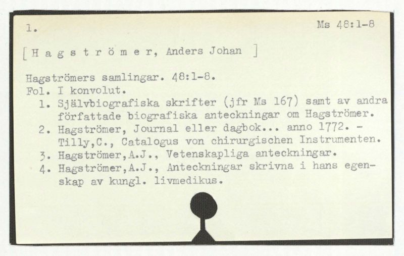 Jfr. Ms 167: Hagströmer, A.J., Avto-biografie.