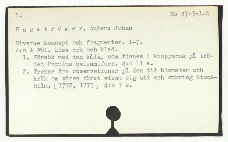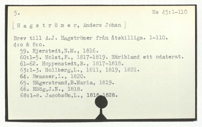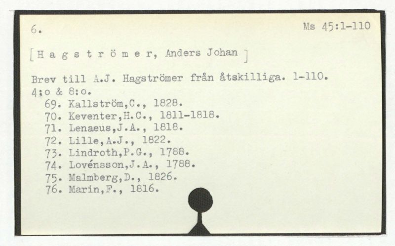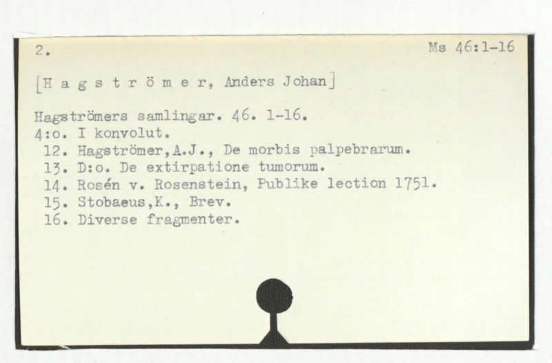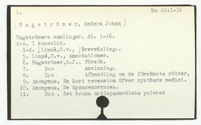 Hagströmers samlingar. 46. 1-16.