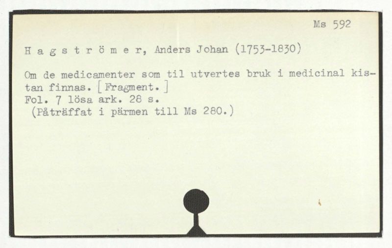 (Påträffat i pärmen till Ms 280.)
