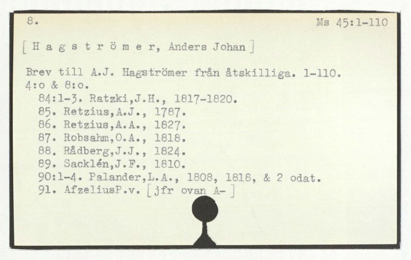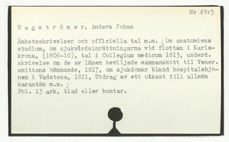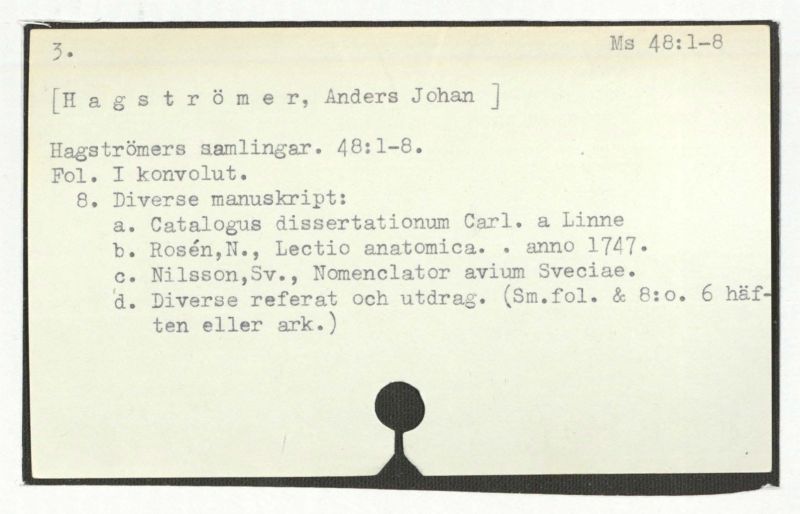 Hagströmers samlingar. 48:1-8.