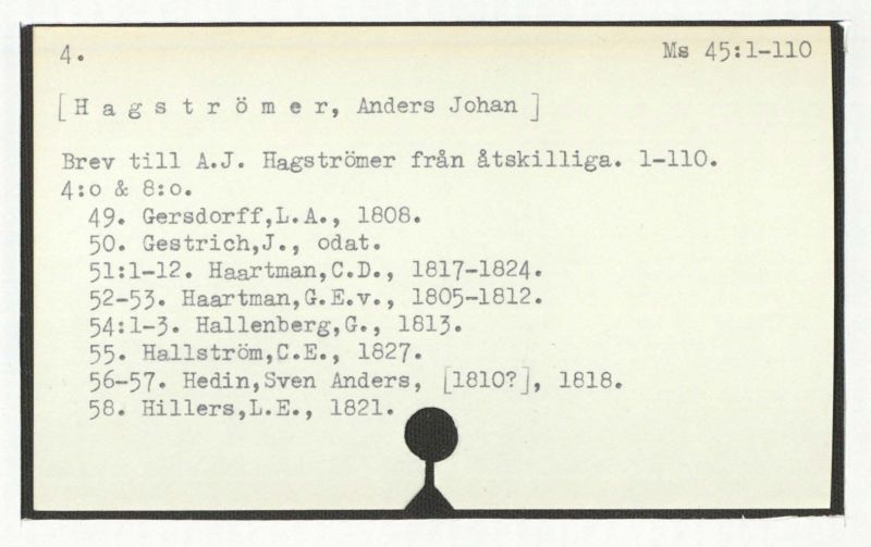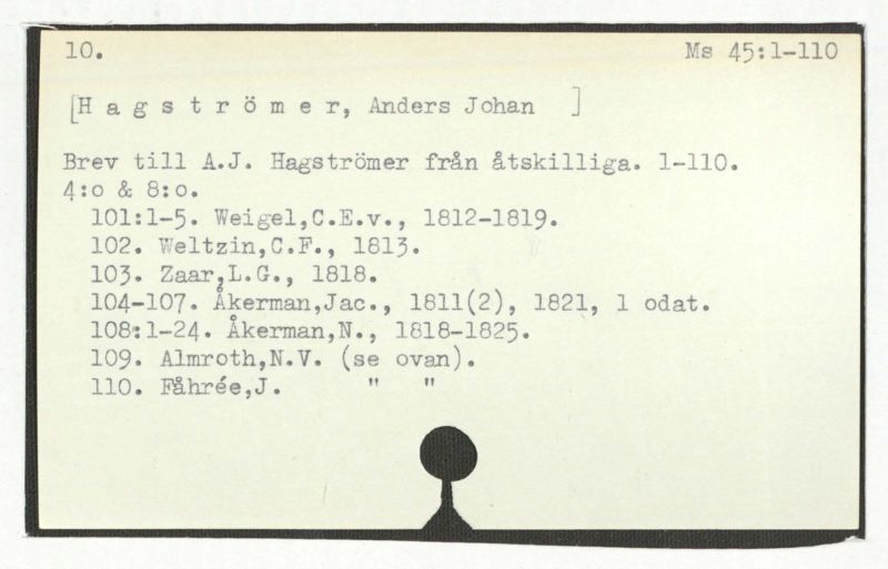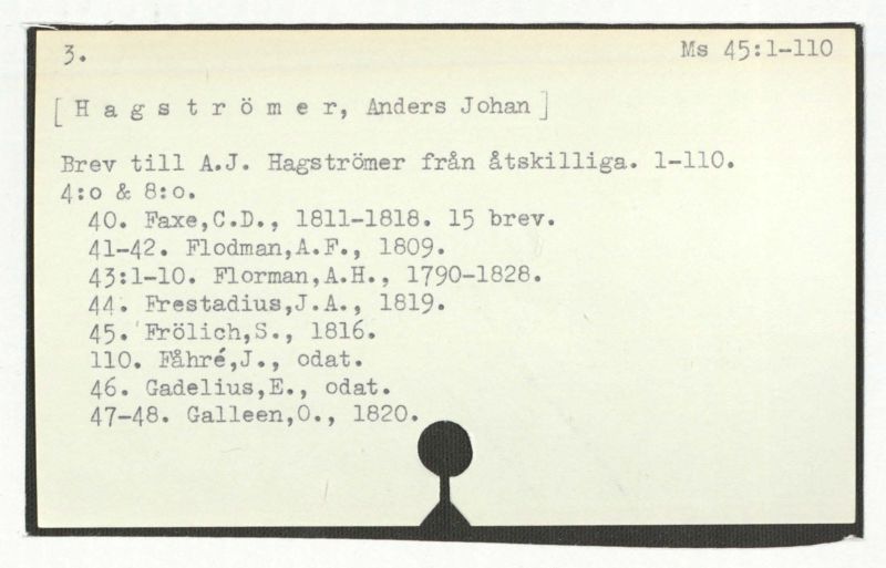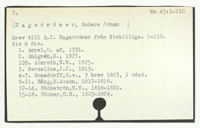 Brev till A.J. Hagström från åtskilliga. 1-110.