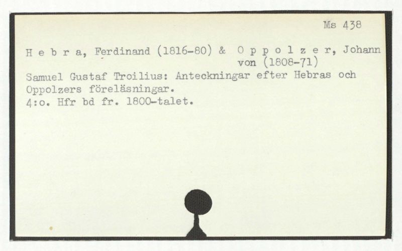 Samuel Gustaf Troilius: Anteckningar efter Hebras och Oppolzers föreläsningsar.