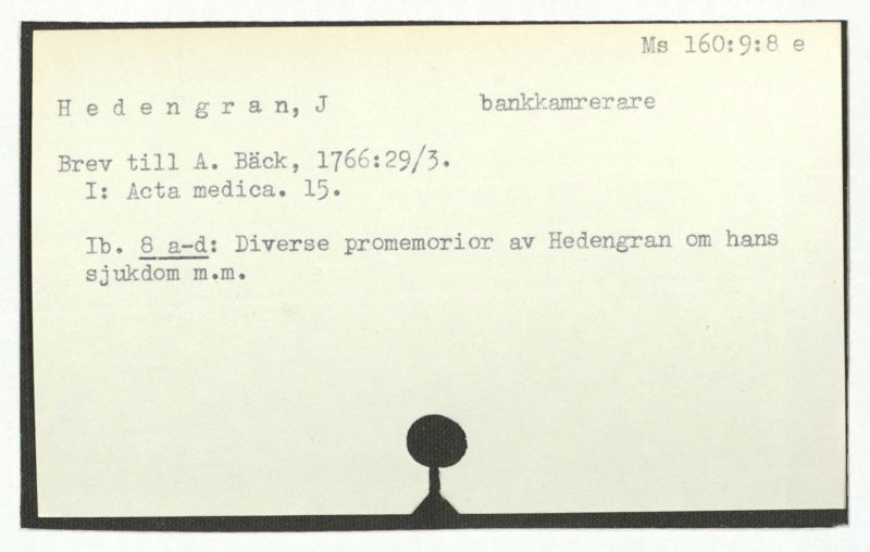Ib. 8 a-d: Diverse promemorior av Hedengran om hans sjukdom m.m.