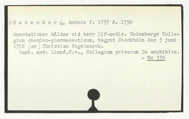 Annotationer håldne vid herr lif-medic. Hedenbergs Colle-
