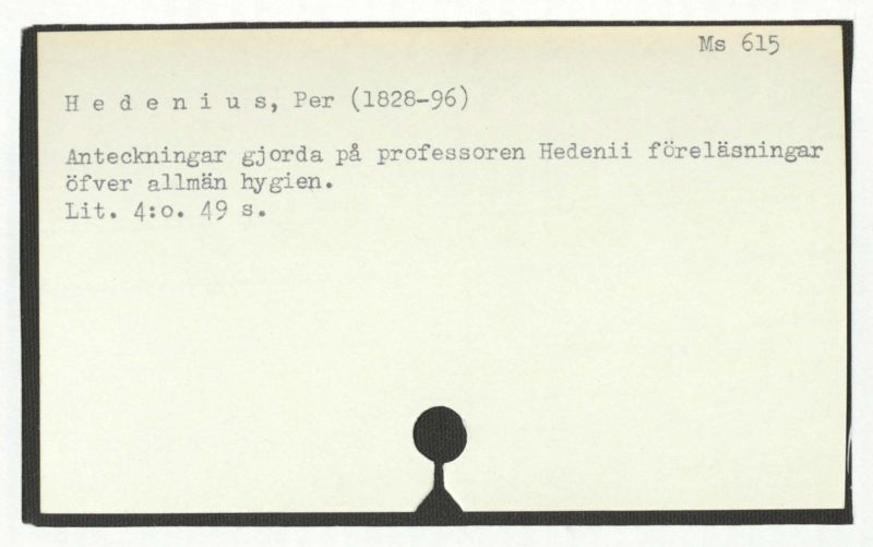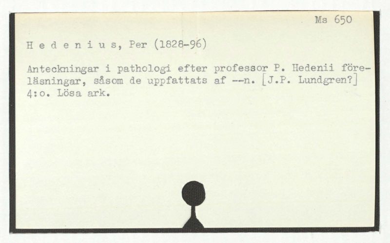 Anteckningar i pathologi efter professor P. Hedenii föreläsningar, såsom de uppfattats af --n. [J.P. Lundgren?]