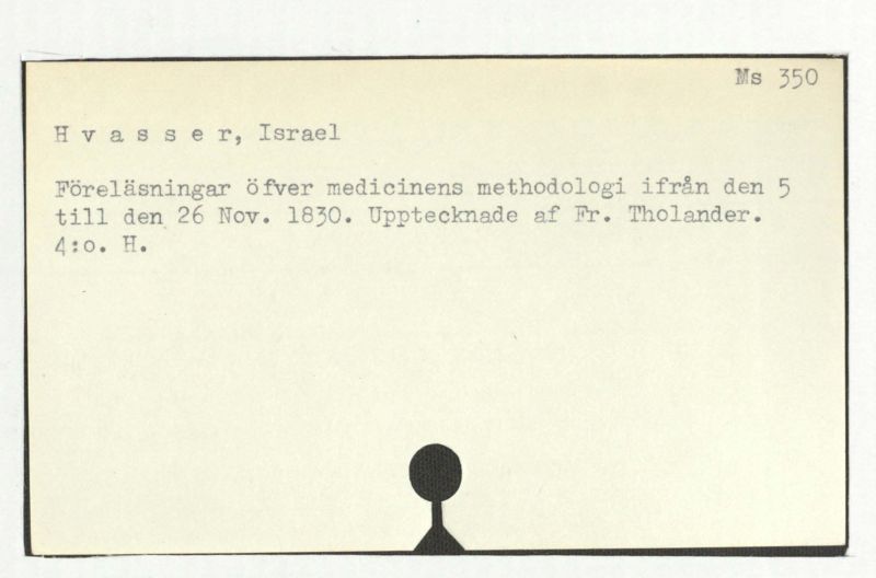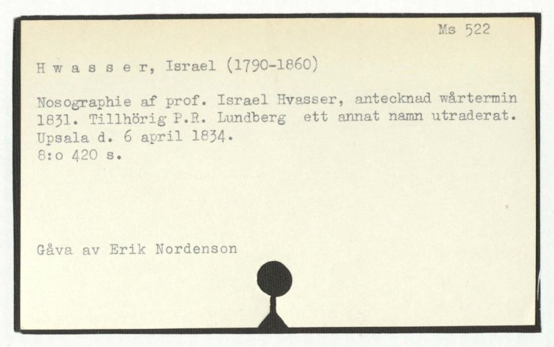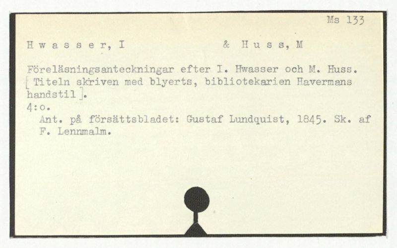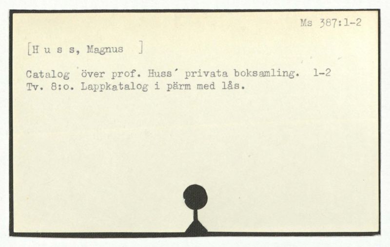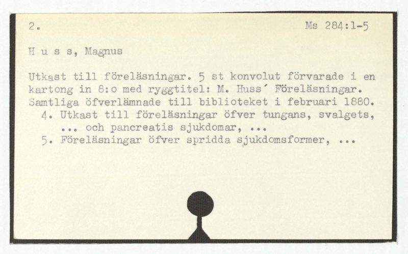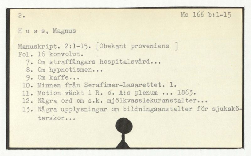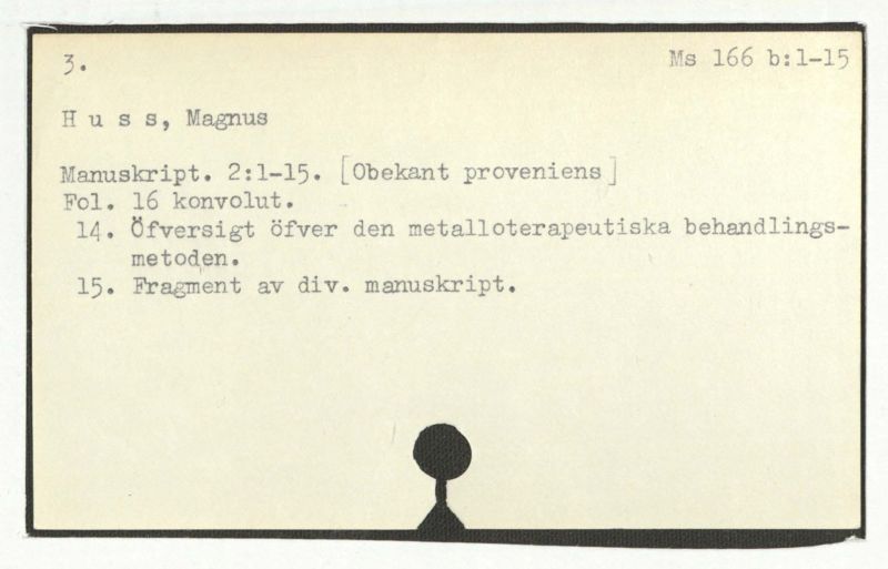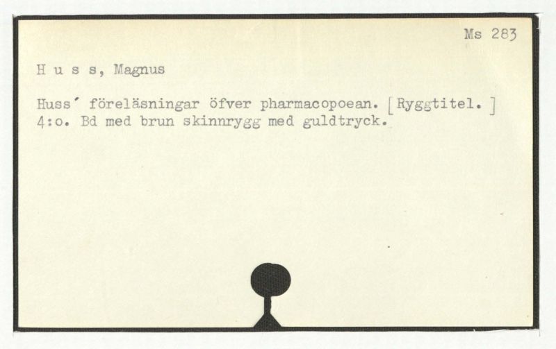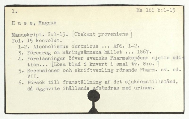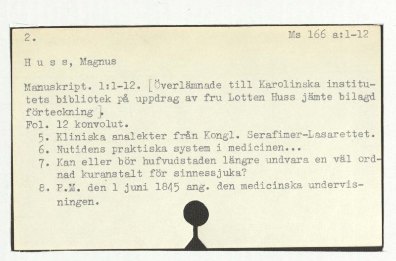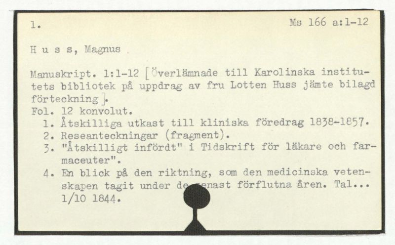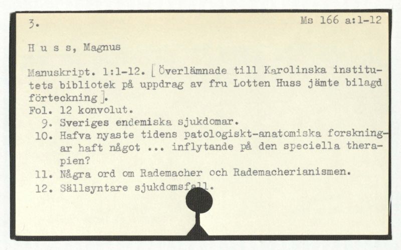 Manuskript. 1:1-12 [Överlämnde till Karolinska institutets bibliotek på uppdrag av fru Lotten Huss jämte bilagd förteckning].