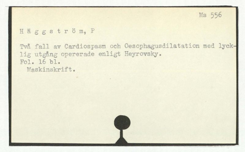 Två fall av Cardiopasm och Oesophagusdilatation med lycklig utgång operade enligt Heyrovsky.