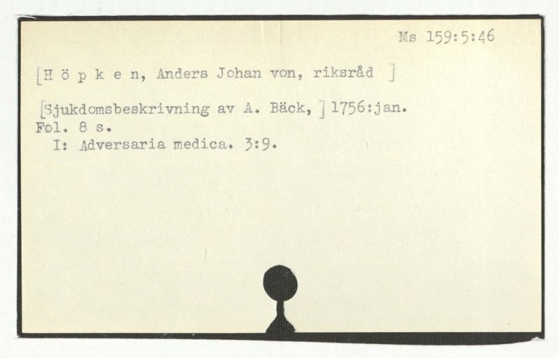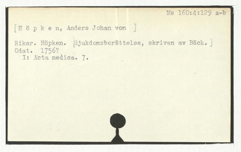 Riksrf. Höpken. [Sjukdomsberättelse, skriven av Bäck.]