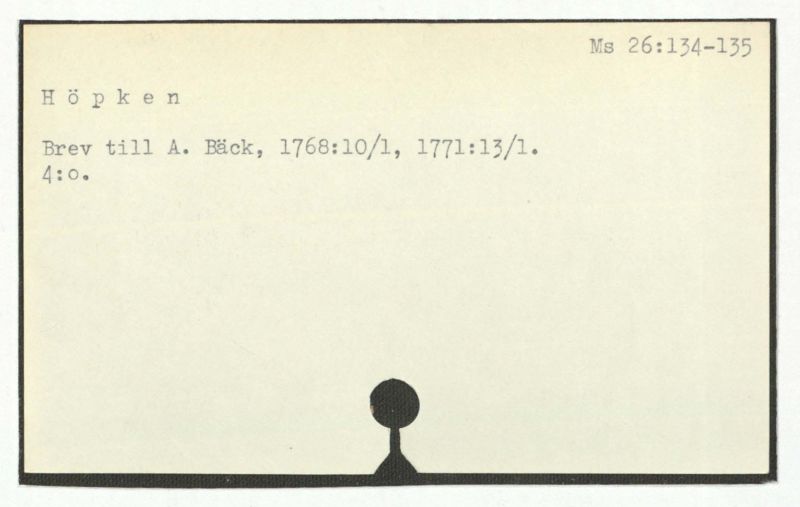 Brev till A. Bäck, 1768:10/1, 1771:13/1.