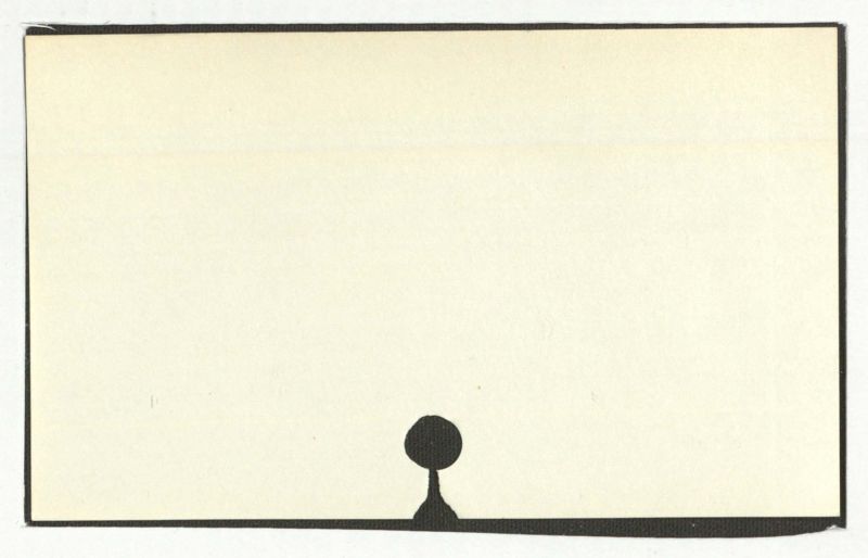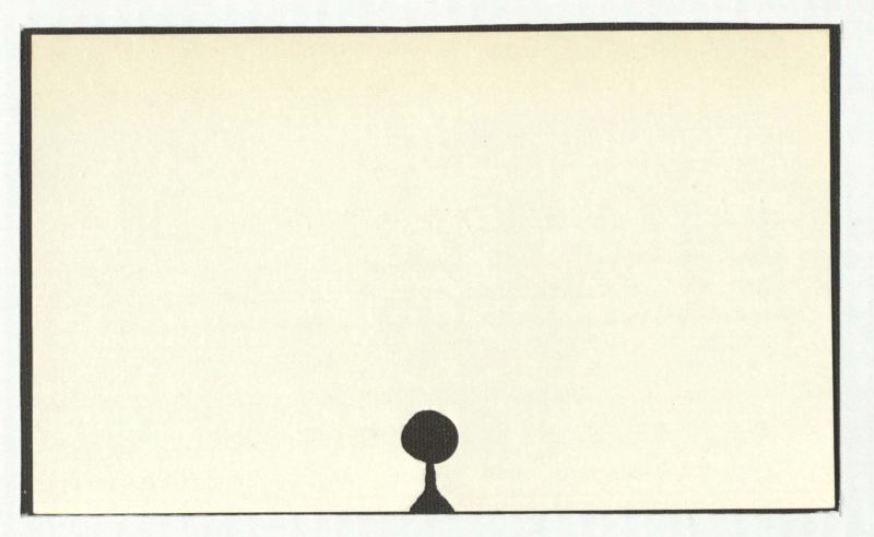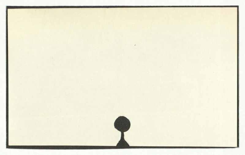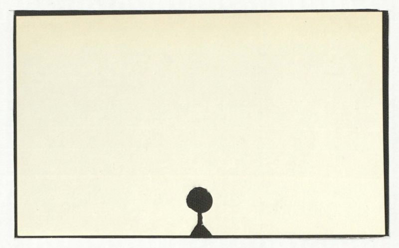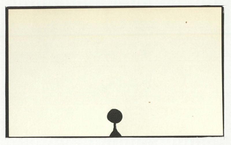 Thereisnotextintheimage. Theimageconsistsofaminimalistdrawingwithablackrectangularframe, a light beige background, and a black silhouette of a simple figure at the bottom.