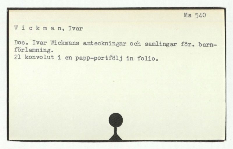 Doc. Ivar Wickmans anteckningar och samlingar för. barnförlamning.
