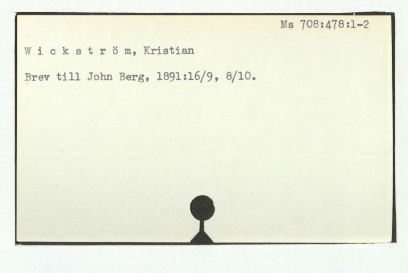 Brev till John Berg, 1891:16/9, 8/10.