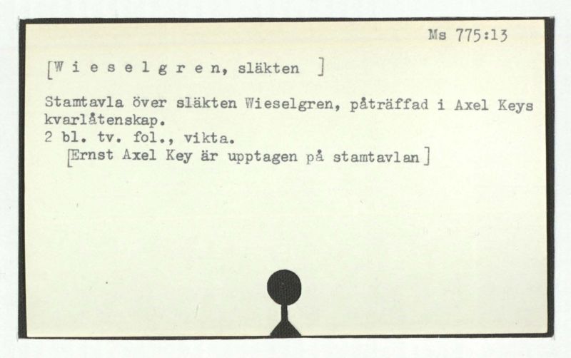 Stamtavla över släkten Wieselgren, påträffad i Axel Keys kvarlåtenskap.