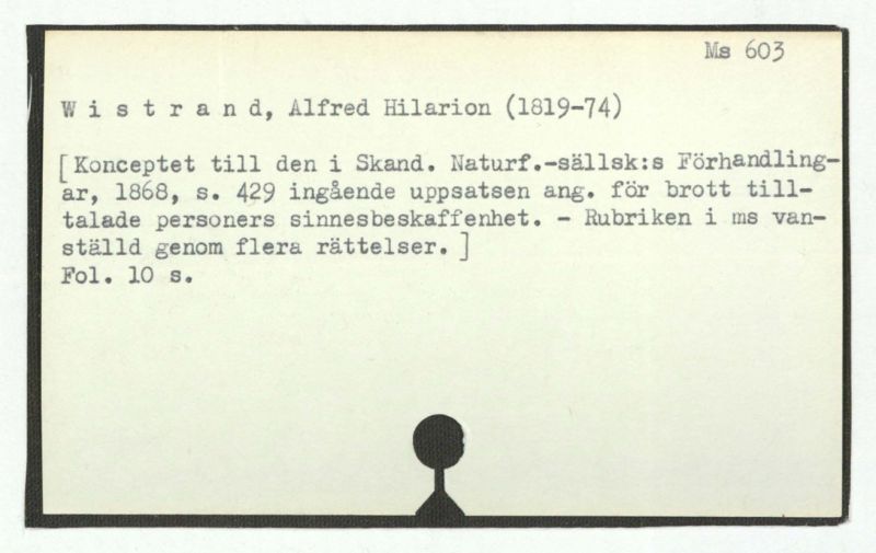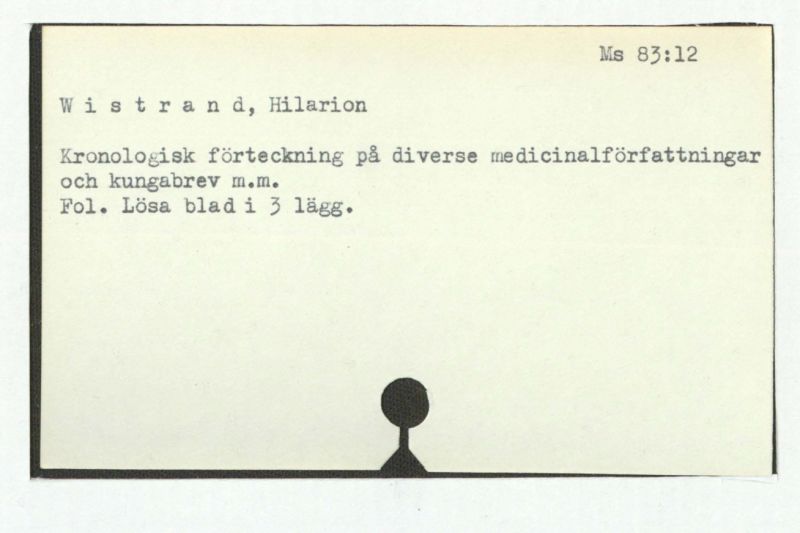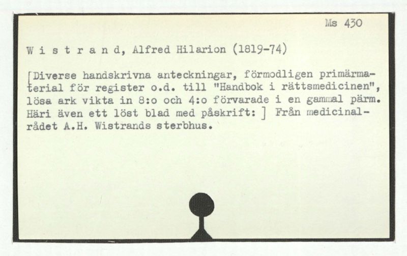 Här i även ett löst blad med påskrift: ] Från medicinalrådet A.H. Wistrands sterbhus.