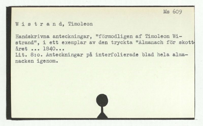 Handskrivna anteckningar, "förmodligen af Timoleon Wi-