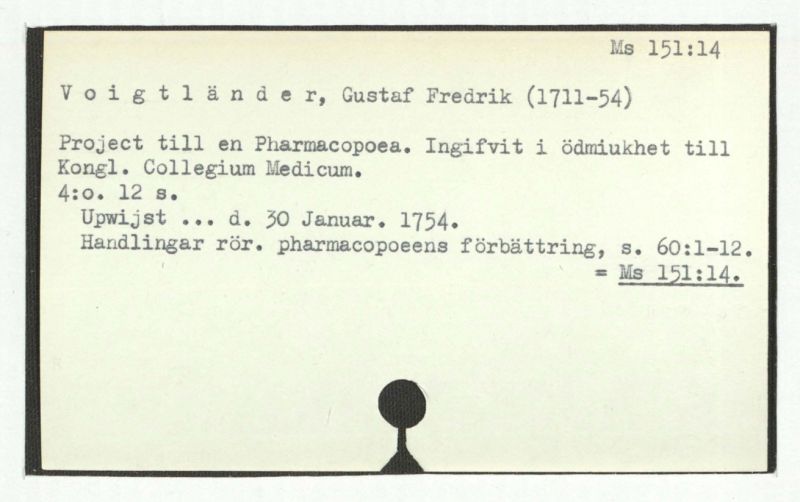 Project till en Pharmacopeea. Ingifvit i ödmiukhet till Kongl. Collegium Medicum.