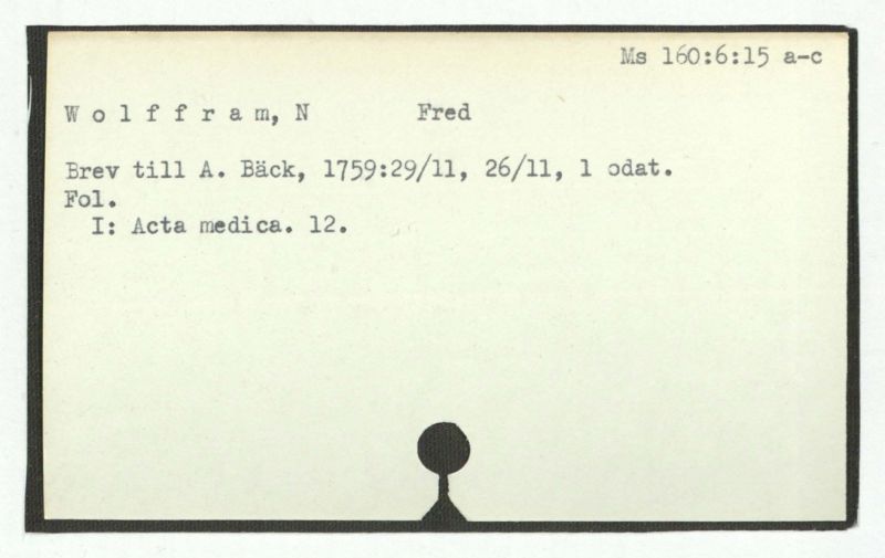 Brev till A. Bäck, 1759:29/11, 26/11, 1 odat.