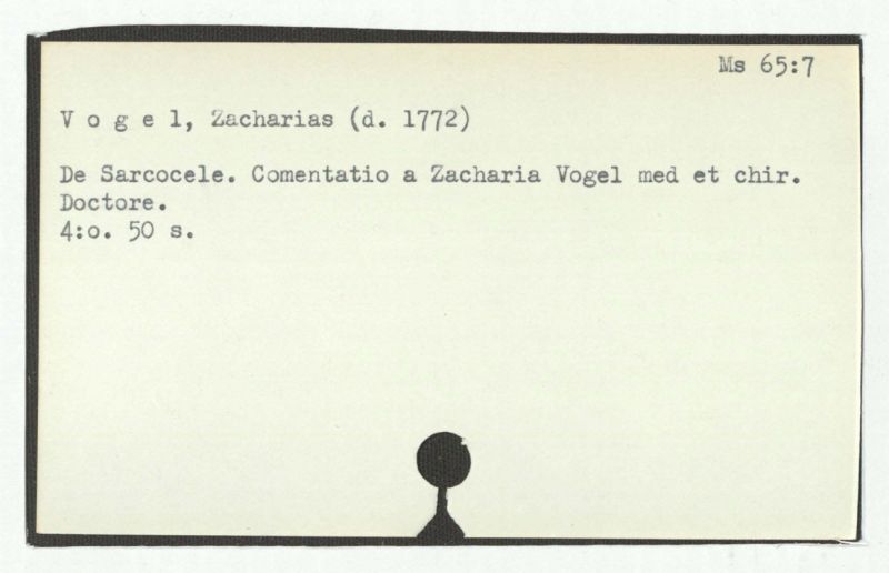 De Sarcocele. Commentatio a Zacharia Vogel med et chir. Doctore.