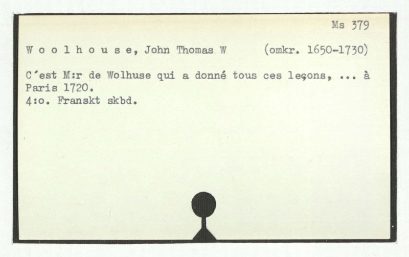 C'est M'r de Wolhuse qui a donné tous ces leçons, ... à Paris 1720.
