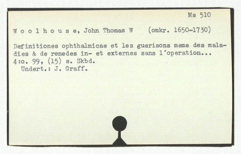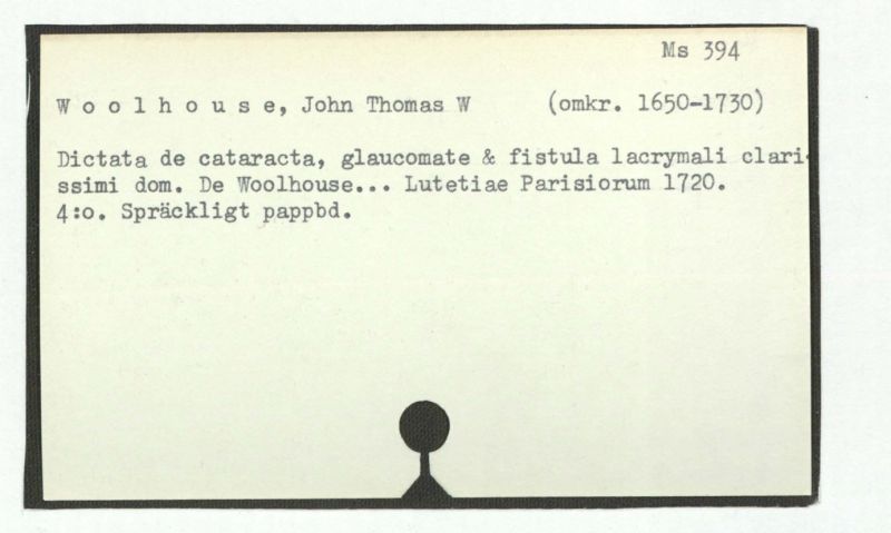 Dictata de cataracta, glaucomate & fistula lacrymali clarissimi dom. De Woolhouse... Lutetiae Parisiorum 1720.