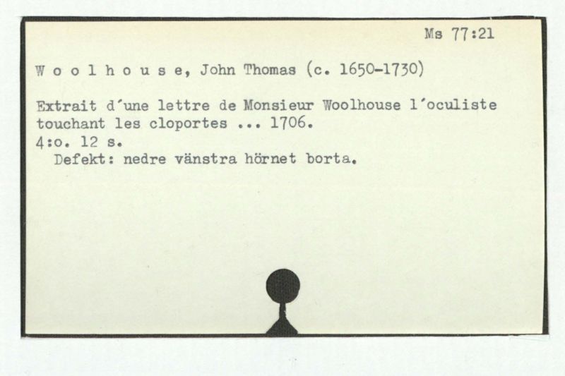 Extrait d'une lettre de Monsieur Woolhouse l'oculiste touchant les cloportes ... 1706.