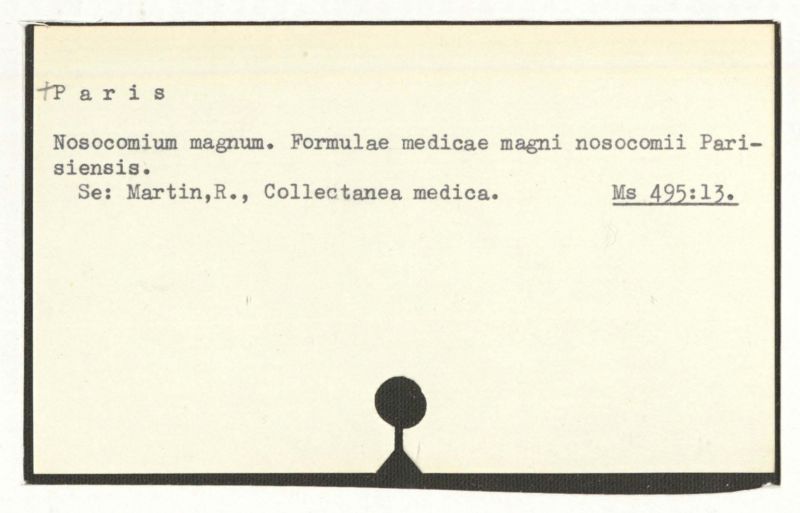 Nosocomium magnum. Formulae medicae magni nosocomii Parisiensis.
