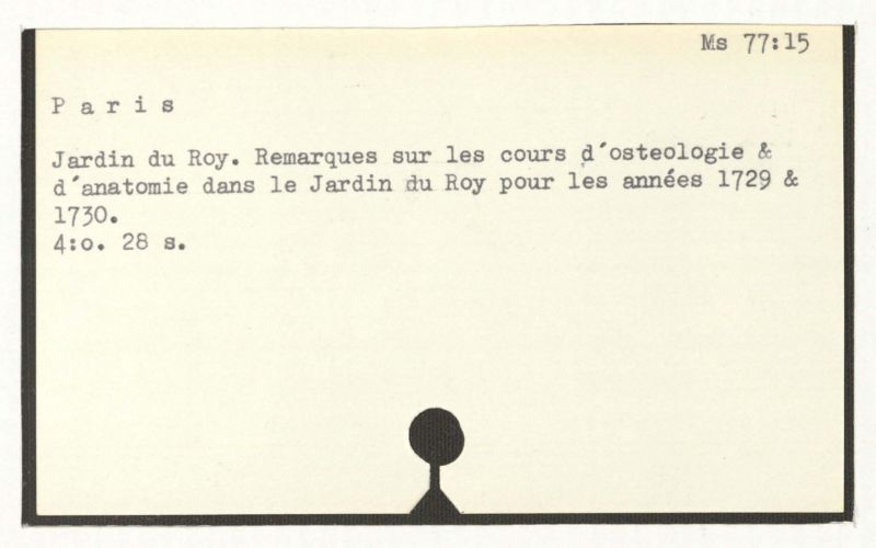 Jardin du Roy. Remarques sur les cours d'osteologie & d'anatomie dans le Jardin du Roy pour les années 1729 & 1730.