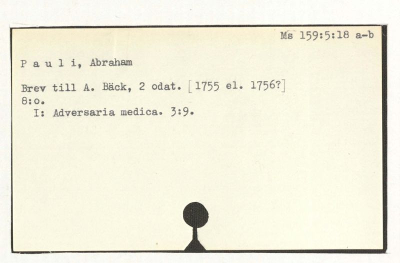 Brev till A. Bäck, 1757:15/5.
