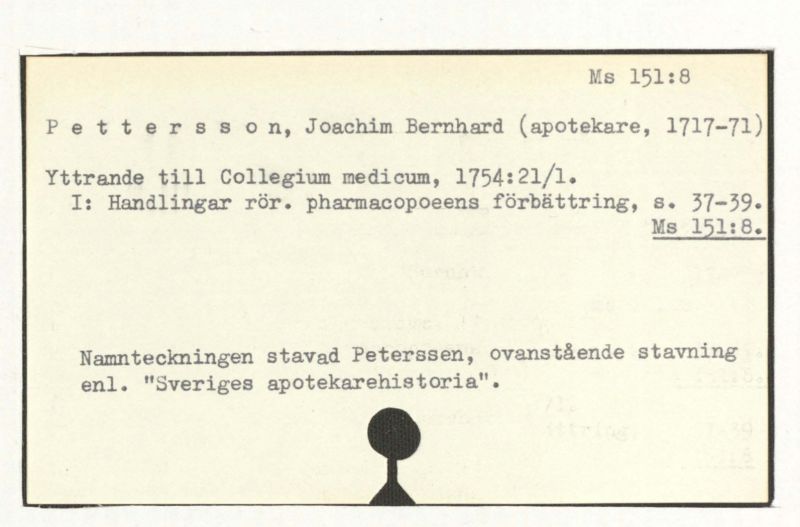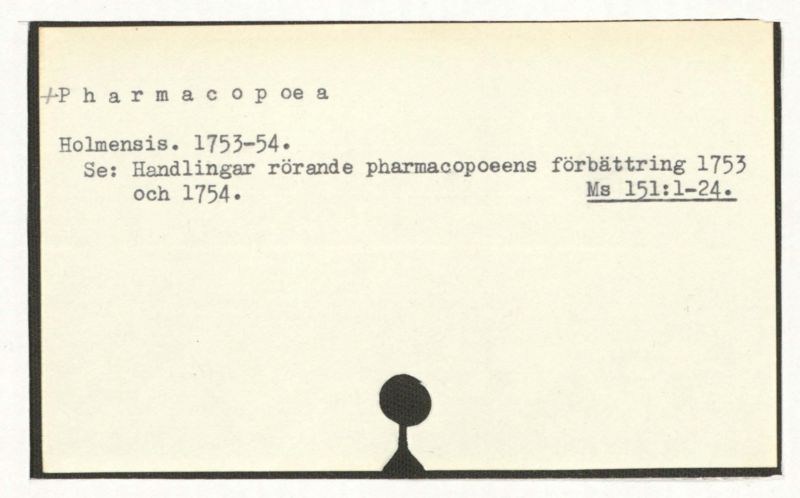 Se: Handlingar rörande pharmacopoens förbättring 1753 och 1754.