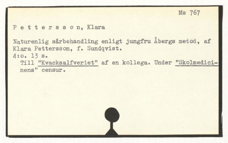 Naturenlig sårbhandling enligt jungfru Åbergs metod, af Klara Pettersson, f. Sundqvist.