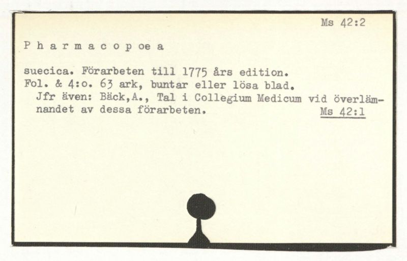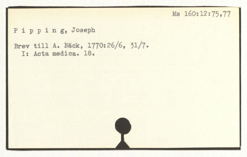Jfr även: Bäck,A., Tal i Collegium Medicum vid överläm-