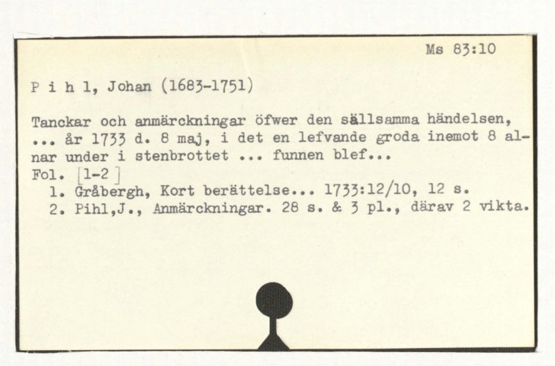 ... år 1733 d. 8 maj, i det en lefvande groda inemot 8 al-