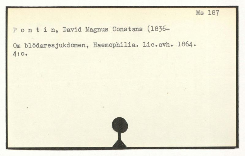 Om blödaresjukdomen, Haemophilia. Lic.avh. 1864.