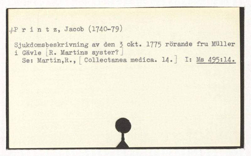 Sjukdomsbeskrivning av den 3 okt. 1775 rörande fru Müller i Gävle [R. Martins system?