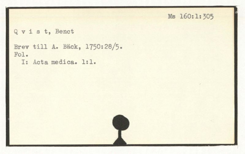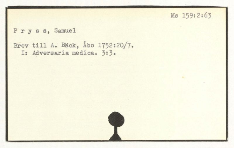 Brev till A. Bäck, 1754.