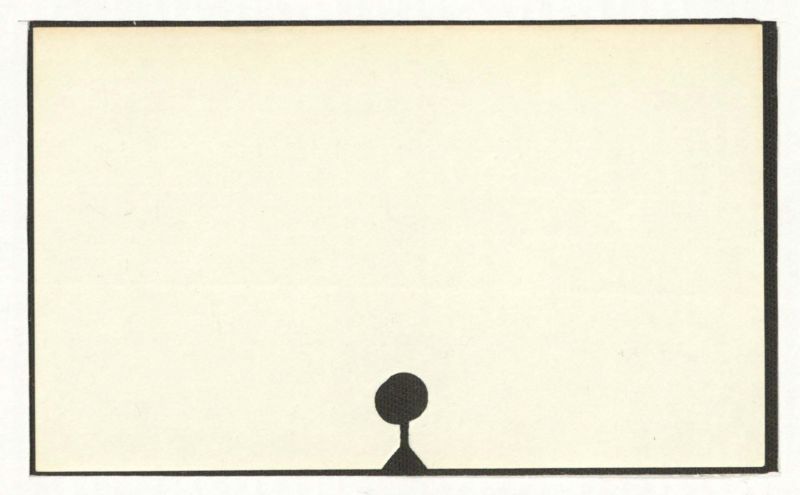 There is no text present in the image. Only a minimalist silhouette of a figure against a beige background within a black rectangular border is visible.